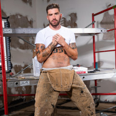 Isaac X is working on some scaffolding, patching holes in the wall when Chris Damned comes in to check his work. Hard work quickly transitions to hard cocks as Isaac pulls his pants down and invites Chris in to eat his hole. Chris takes his time rimming Isaac's smooth hole before making his way around the front and deepthroating his cock. |