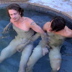 How far will two gay curious guys go with each other?Rod Evans and Derrick Dickem are both gay-curious straight guys that are encouraged to see how far their combined sexual tensions will go. After some sensual horseplay including soaking in a hot tub, they relax on the bed and begin stroking off. There is a bit of resistance but still both men release their loads of hot spunk. |
